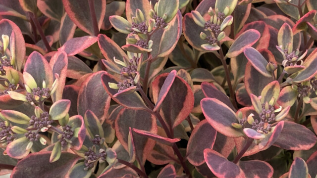 Fiery orange and hot pink edges contrast a deep purple center in the new SunSparkler® sedum Dazzling Dynamiteppaf. This truly is a dazzling addition to the SunSparkler line, with incredible color and worry-free care.